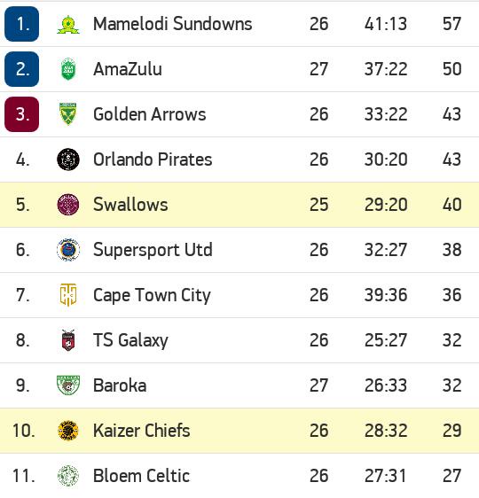The current and complete premiership table & standings for the 2020/2021 season, updated instantly after every game dstv premiership. Plus get access to upcoming fixtures and breaking news!